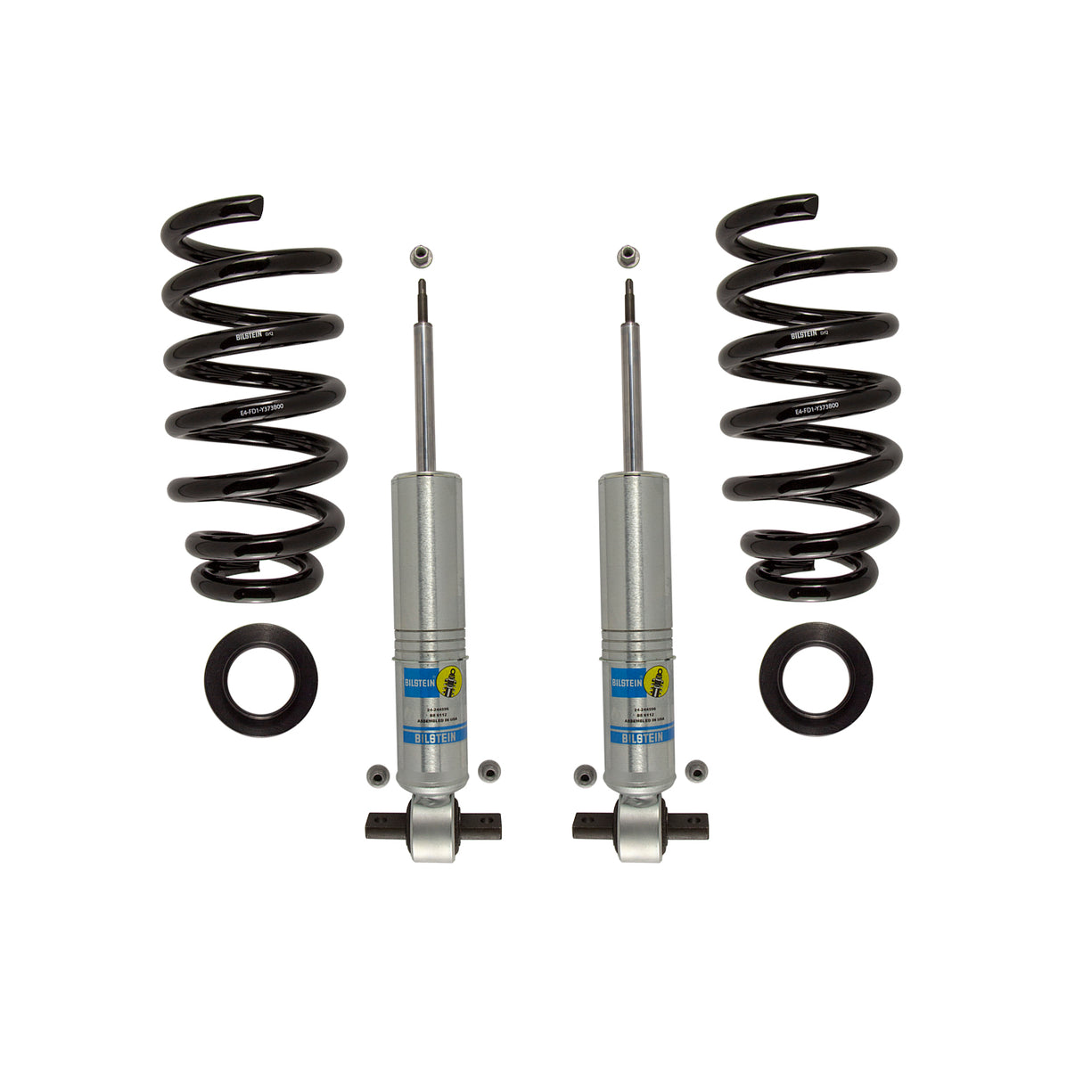 Bilstein B8 6112 leveling kits are designed to provide more ground clearance, allow for larger tires, and increase wheel travel. Multiple snap-ring grooves in the body allow for different spring seat positions, providing 0-2.75 inches of front lift (depending on application). These kits consist of (2) 60mm shock absorbers combined with (2) custom matched cold wound coil springs and (2) billet aluminum spring seats. The large 2.65-in OD body and 60mm digressive piston allows for increased damping control for optimal on-road and off-road capabilities. Experience the legendary Bilstein off-road experience with the best direct fit spring and shock kit for your light truck or SUV.