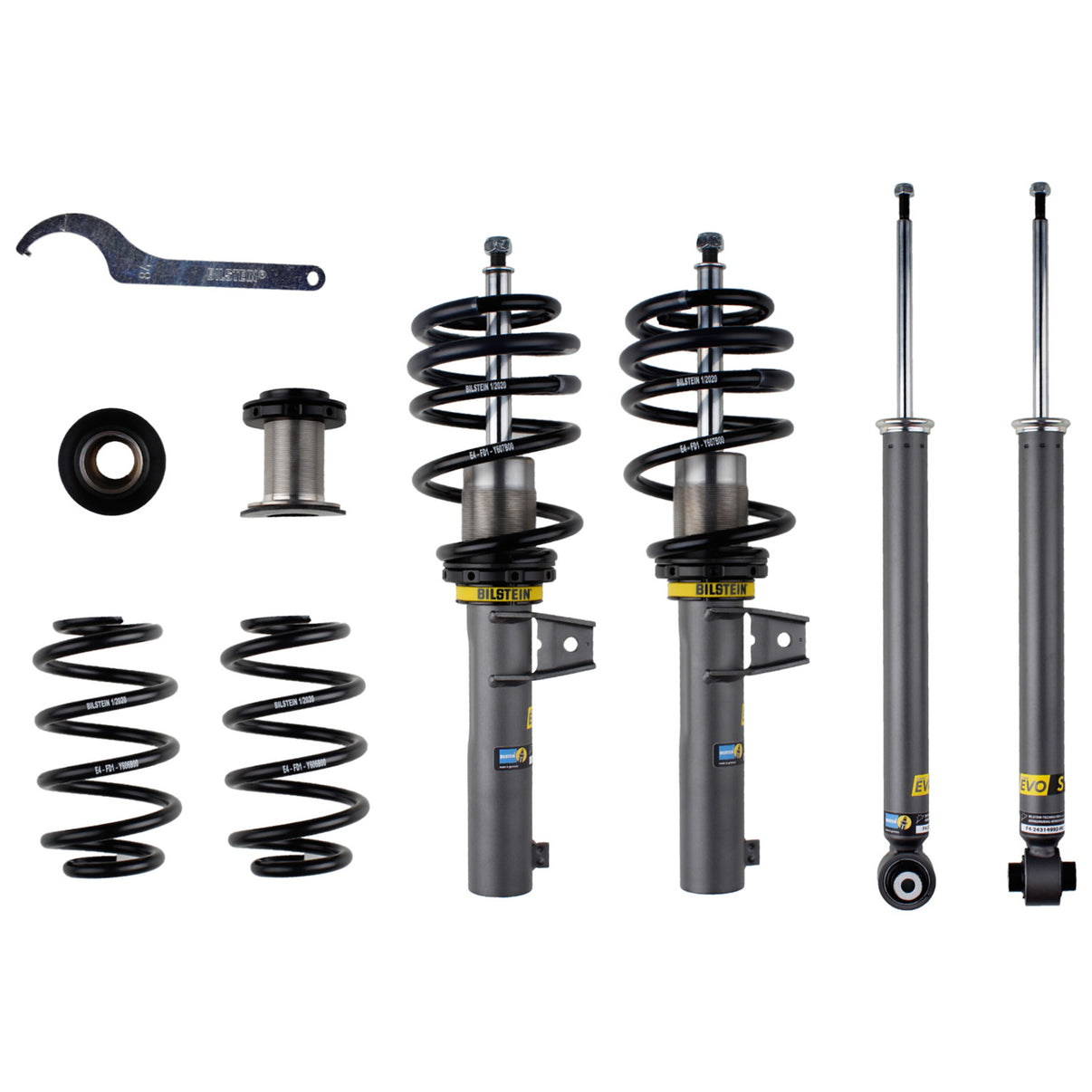 Bilstein EVO Series coilovers are the next step in the evolution of performance suspension tuning. EVO S is a coilover kit built and tuned specifically for everyday street use. Featuring ride height adjustability in an OE quality, direct fit package. Redesigned threaded bodied dampers allow for extreme lowering of up to 70mm. High quality components ensure longevity through every day use while providing a sportier look. Improved handling and ride comfort are achieved through specific application tuning. Bilstein EVO Series suspension kits are designed and built in Germany with technology tested and tuned on the Nürburgring.